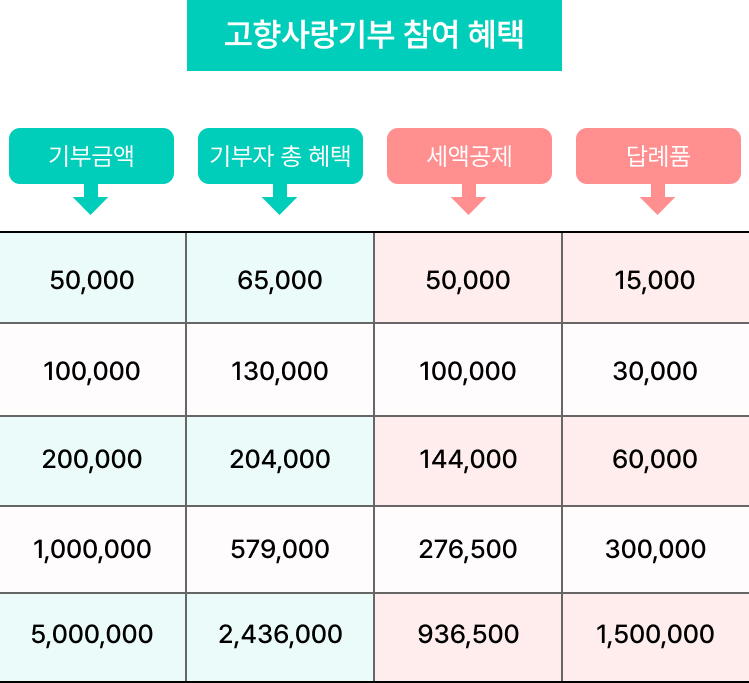 연말정산에서 10만원까지 전액, 10만원 초과 20만원 이하는 44%, 20만원 초과는 16.5% 세액공제를 받을 수 있고, 기부금의 약 30% 상당의 지역 특산물을 선택할 수 있어 절세와 소비를 동시에 만족시키는 구조로 평가됩니다.