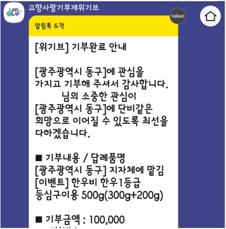 (아래 내용은 고향사랑기부제 위기브 기부자님의 실제 후기입니다)