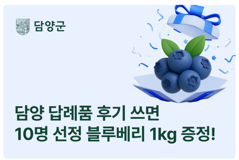 추첨 경품 (총 10명): 새콤달콤 톡 터지는 담양 블루베리 1kg