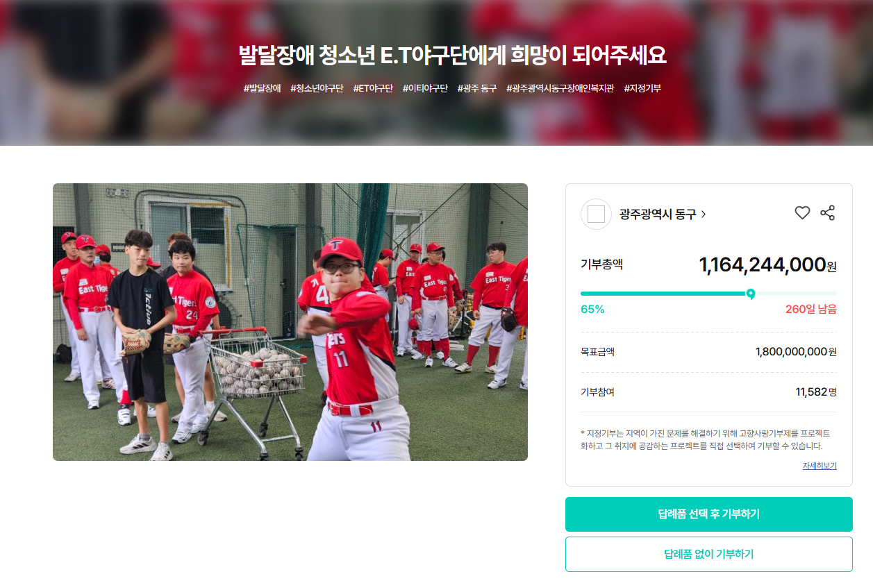 [위기브 E.T 야구단 지정기부 참여 & 혜택 받으러 가기]