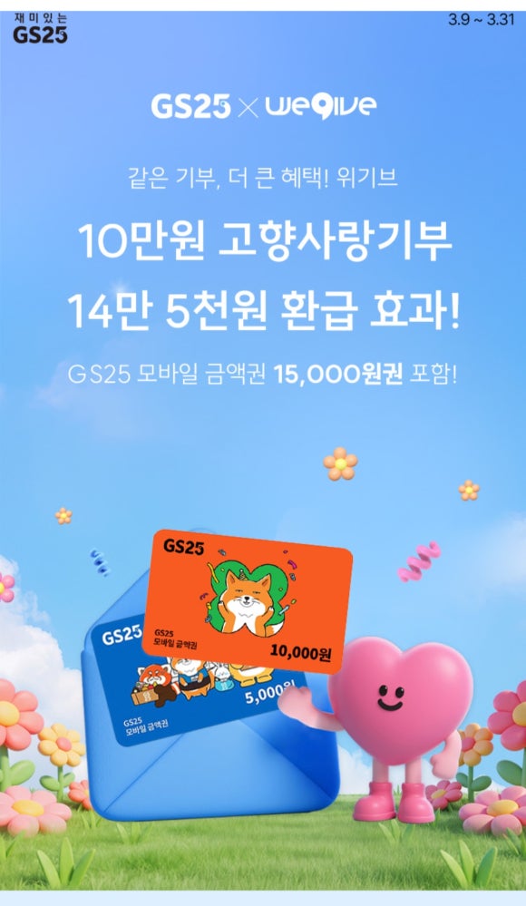 GS모바일 금액권 15,000원을 받았는데요