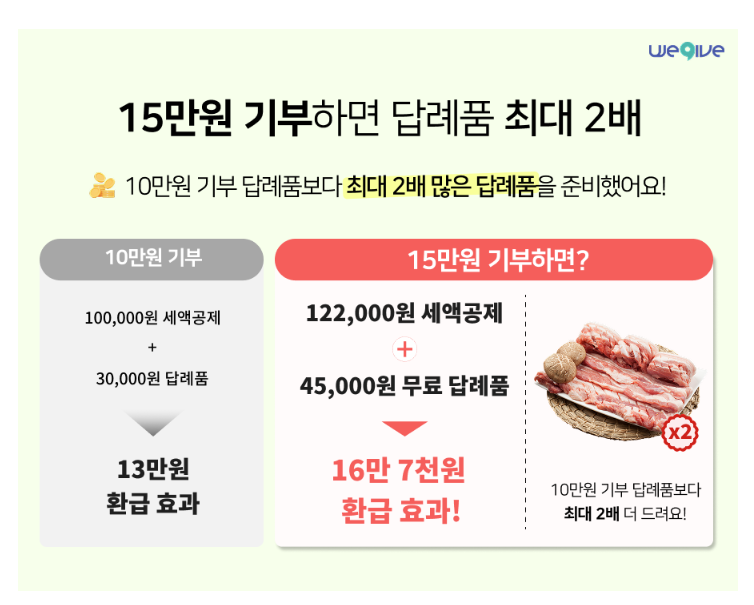 3️⃣ 위기브(WeGive) 한정 혜택: 답례품 2배 증량 이벤트!