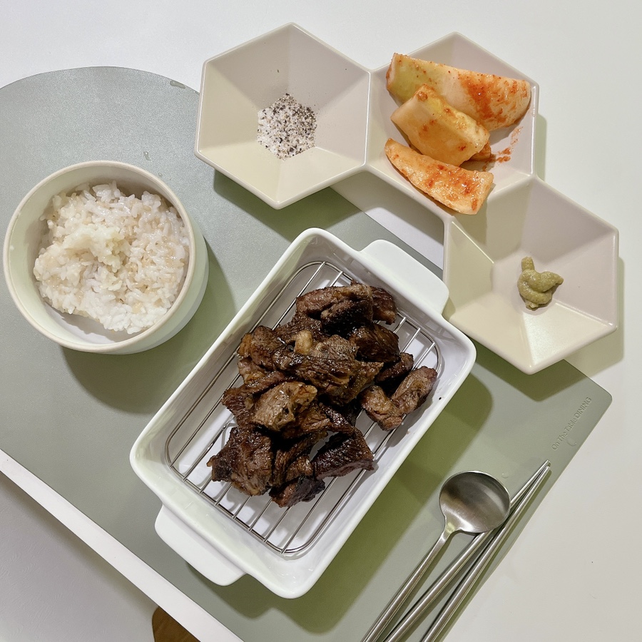영양군에서 보내온 꽃등심으로 고기가 너무 좋더라고요. 정말 +++A 가 아닐까하는 생각이 들었고, 사실 양이 적으면 어쩌나했는데 아이 혼자 한끼 먹기 딱 좋은 양이였습니다.!!!!