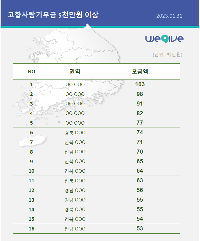 데이터로 보는 고향사랑기부금 모금 현황 (2023년 01월)