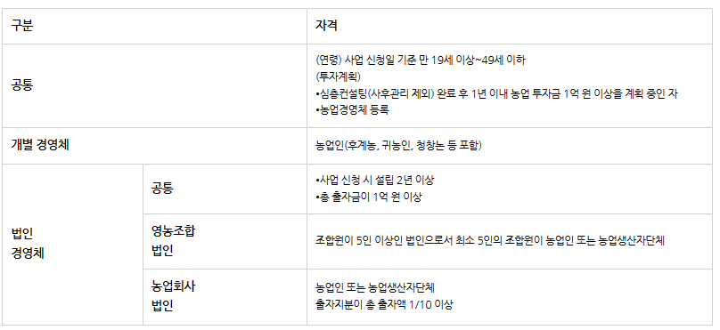 •영농경력 : 독립경영 3년 이하(예비 농업인 포함)