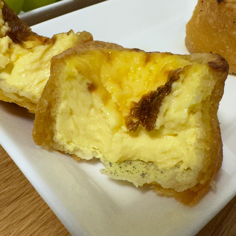 요 3가지 조건을 모두 충족하는 에그타르트..였습니당... 두툼한 푸딩 같은 식감의 필링이 너무 달지 않아서 좋았어요! 심지어 밀가루와 시럽이 들어가지 않아 건강도 챙길 수 있어요!!(다이어터분들에게도 덜 부담될듯,,?)